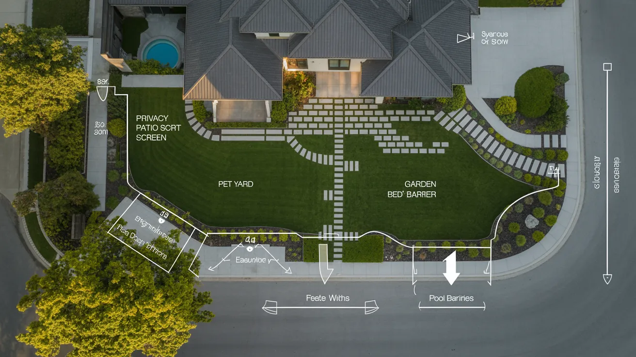 Verify fence details against city ordinances and community rules concerning dimensions, visibility, and positioning. Preserve required corner visibility and ensure proper drainage pathways to stop water from collecting near foundations. Space posts according to terrain features and building attachment locations for optimal stability. Use heavy-duty components at regularly accessed entrances. Design lighting and latch systems to satisfy security requirements, specifically for pool barriers. Document all dimensions on a properly scaled layout.